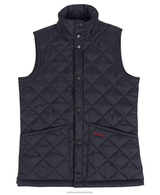 This lightweight gilet is a stylish option for kids on the go. It's got a stand collar, two slip pockets at the front and a contrast Barbour logo on the left pocket. Featuring a classic box quilt throughout and a snap fastening this gilet is great for layering up on colder days.