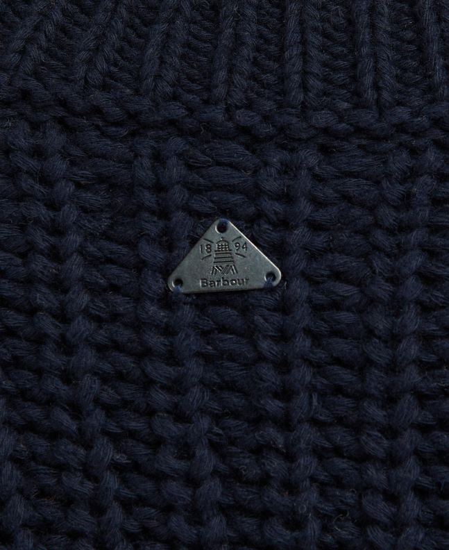 The Barbour Lunan Knit features a chunky fisherman rib design with a cosy funnel neck in a sophisticated striped design. With roll edge finishes, this garment works perfectly layered with a midi skirt or jeans for an everyday staple.