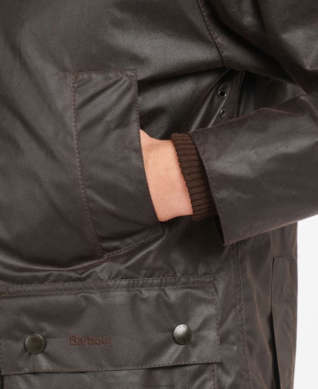 In 1980, Barbour produced their first short, lightweight jacket, the Bedale Originally designed for riding, the Bedale is favoured by many Britons, from royalty to pop icons.Dame Margaret Barbour designed the Bedale with equestrian practicalities in mind, with a shorter length, relaxed fit, rear vents and the essential Nylon inner 'drip-strip' that provided resistance to damp from horses seeping into the jacket. Made with mediumweight 6oz waxed cotton and fully interactive with optional zip-in thermal liners and hoods, the Bedale is a brilliant all-year-round jacket. The classic elements of a Barbour jacket are all included, with a brass two-way ring-pull zip and studded 'Stormfly' front, two large bellows pockets and two moleskin-lined handwarmer pockets, and the traditional corduroy collar with studs for a hidden throat flap.Now a classic, the practicality and simple style of the Bedale remains popular with all ages. The popularity of the Bedale has inspired a slimmed down version for women, the Beadnell, which is named after a small fishing village in Northumberland. Bedale is a registered trademark of J Barbour & Sons Ltd